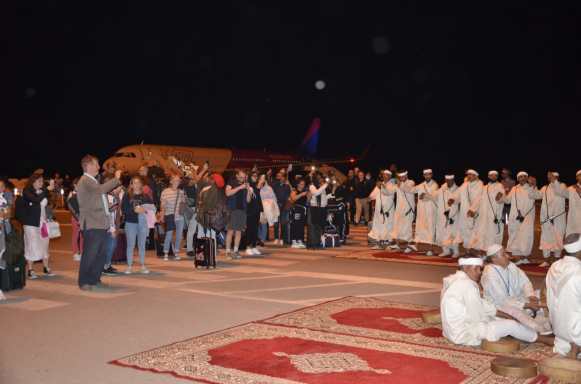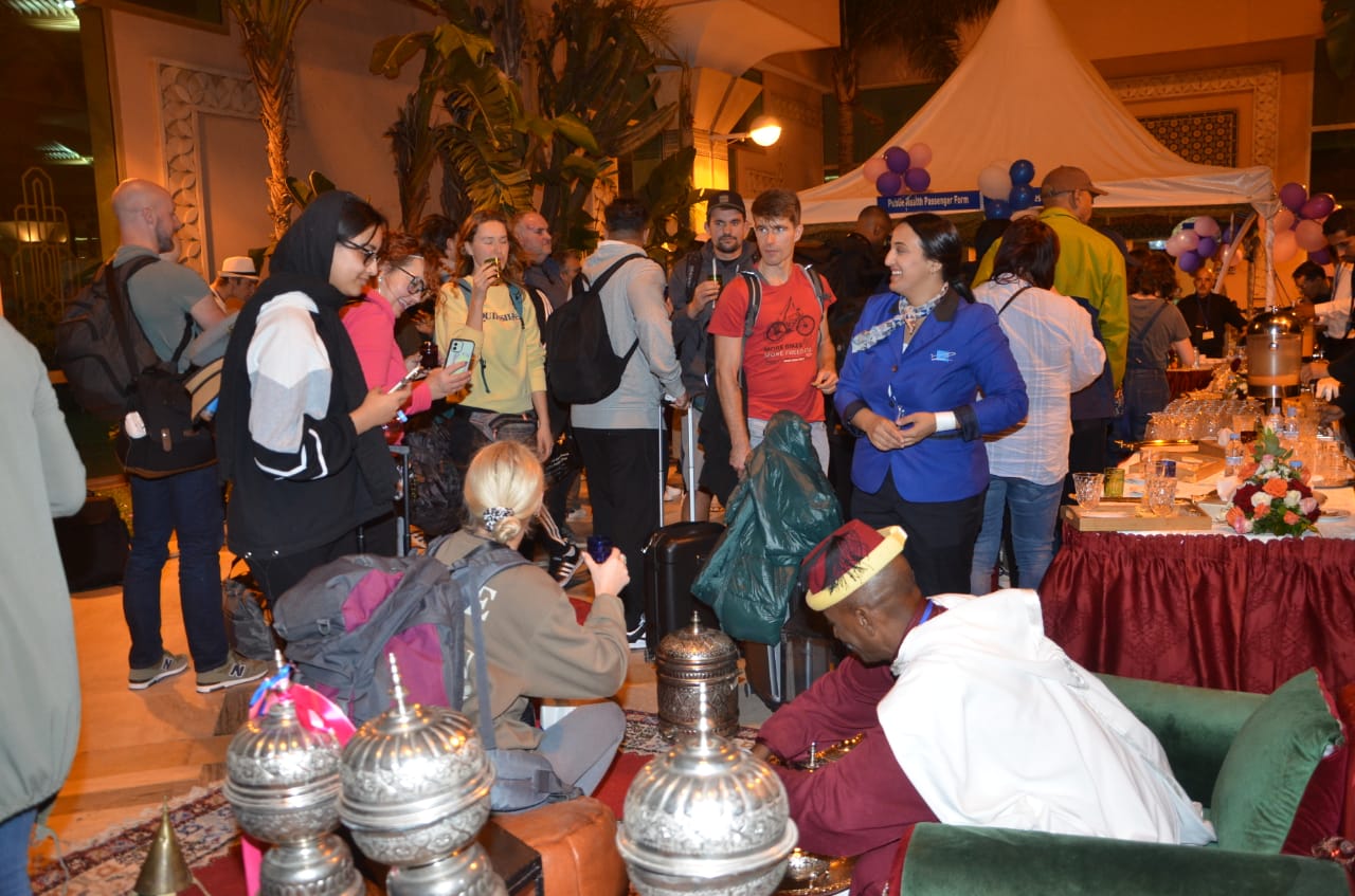 ولقي مسافرو الرحلة الجوية الأولى ترحابا واحتفالا يليق بمستوى الحدث من قبل إدارة مطار المسيرة بحضور مختلفة المصالح والهيئات الإدارية المعنية،