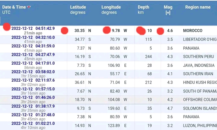ضربت هزة أرضية، مدينة أكادير ونواحيها، صبيحة اليوم الإثنين 12 دجنبر الجاري، على الساعة الخامسة و51 دقيقة بالضبط.