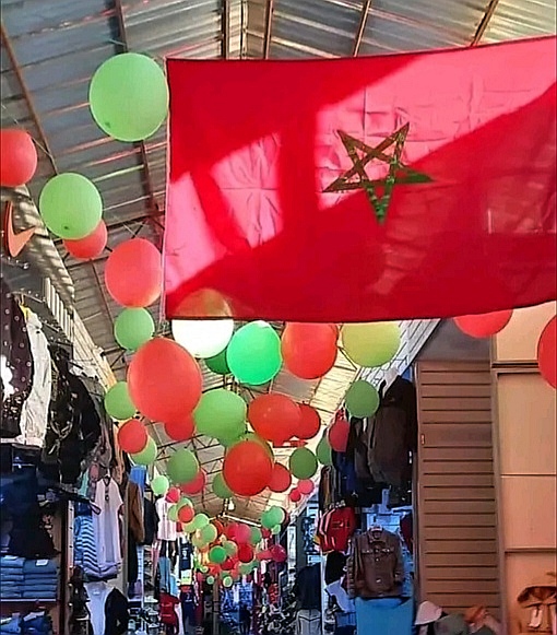 تزينت مدينة أولاد تايمة باللونين الأحمر والأخضر، استعدادا للمباراة الحاسمة التي ستجمع المنتخب المغربي بنظيره الفرنسي، برسم نصف نهائي كأس العالم قطر 2022.