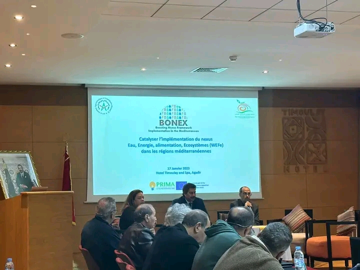 نظم المكتب الجهوي للاستثمار الفلاحي لسوس ماسة ومعهد الحسن الثاني للزراعة والبيطرة، أمس الثلاثاء 17 يناير الجاري، بمدينة أكادير، أول ورشة عمل تشاركية في إطار تفعيل مشروع BONEX حول العلاقة التي تربط مكونات نظام WEFE “الماء، الطاقة، التغذية والأنظمة البيئية” على مستوى المنطقة المتوسطية.