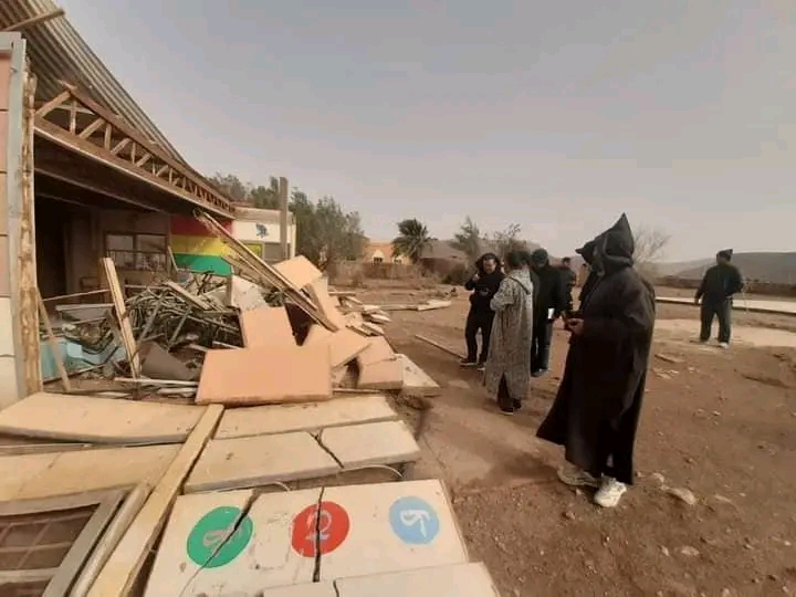 ووقف عامل الإقليم والوفد المرافق له، على الأضرار التي لحقت بالمؤسسة التعليمية المذكورة، وسبل التدخل السريع من أجل الاستئناف الفوري للدراسة بهذه المؤسسة وباقي المؤسسات بالإقليم التي عرفت أضرار مادية خلال هذه الفترة.