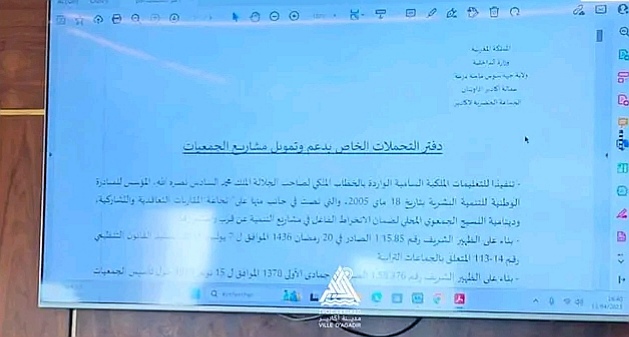 انعقد بقاعة الاجتماعات بالقصر البلدي لمدينة أكادير، اجتماعا خصص لمناقشة تعديل مشروع دفتر التحملات الخاص بجمعيات المجتمع المدني النشيطة في المجال الاجتماعي، البيئي، الثقافي والرياضي.