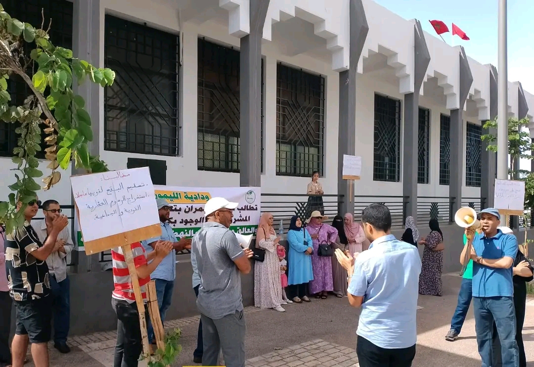 نظمت ودادية الليمون السكنية بحي النهضة الكبرى بأولاد تايمة إقليم تارودانت، أمس الثلاثاء 1 غشت الجاري، وقفة احتجاجية أمام مقر شركة العمران بأكادير.