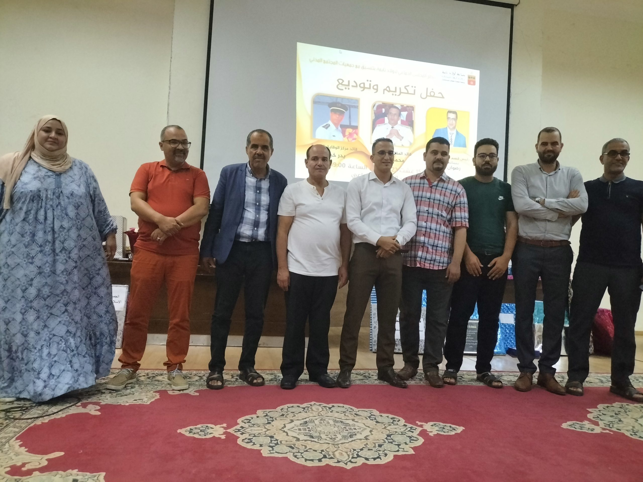 وقد تم تقديم هدايا رمزية للمحتفى بهم كعربون محبة ووفاء واعتراف بالجميل، كما تم إلقاء عدد من الكلمات والشهادات التي استحضرت سنوات العطاء والبذل وعكست مستوى الاحترام والتقدير الذي يحضى به المحتفى بهم.