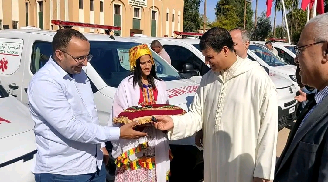 هذا وقد تم توزيع 21 سيارة إسعاف والتي تم افتناؤها في إطار المبادرة الوطنية للتنمية البشرية برنامج الدفع بالتنمية البشرية للأجيال الصاعدة برسم سنة 2024 محور صحة الأم والطفل، بتكلفة اجمالية بلغت 7.660.800 درهم.
