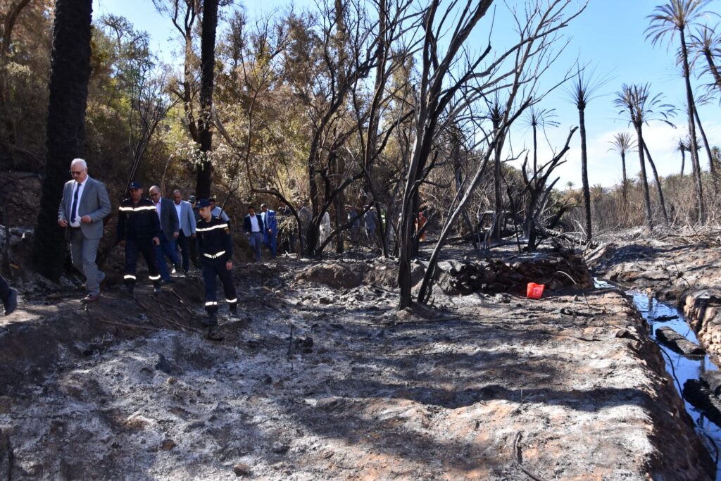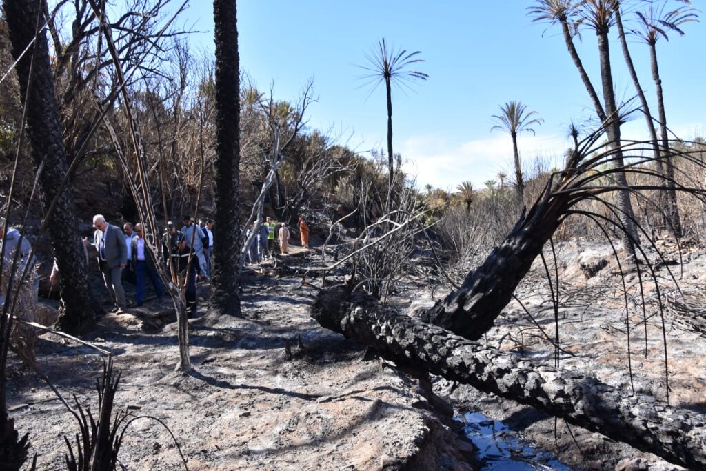 وشملت الزيارة الميدانية التي قام بها عامل الإقليم، مختلف المناطق المتضررة في الواحة، حيث اطلع على حجم الأضرار والخسائر التي خلفها هذا الحريق.