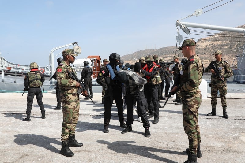 ويتمثل سيناريو هذه المناورات، التي جرت بحضور كل من الفريق محمد بن الوالي، رئيس أركان الحرب المنطقة الجنوبية، واللواء دانييل سيديرمان، نائب قائد فرقة العمل التابعة للجيش الأمريكي لجنوب أوروبا وأفريقيا، في التدخل لتأمين ميناء أكادير عند وصول السفينة المشتبه بها التي تحمل أسلحة دمار شامل.