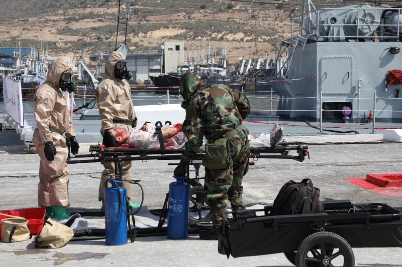 في إطار التعاون العسكري المغربي الأمريكي في تدبير الكوارث، جرت اليوم الثلاثاء بميناء أكادير العسكري، مناورات للحد من أسلحة الدمار الشامل.