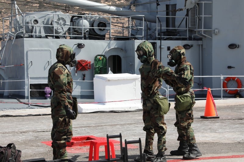 وفي هذا السياق، تم نشر فرق الدفاع النووي الاشعاعي والبيولوجي والكيماوي وفرق التخلص من الذخائر المتفجرة لوحدة الإنقاذ والاغاثة لتقييم التهديدات وإبطال مفعولها باستخدام طائرة دون طيار (درون) ومعدات متخصصة.