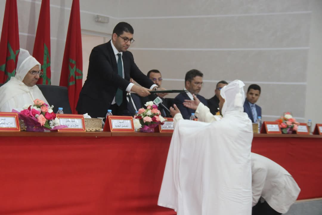 وجرى حفل التنصيب بحضور محمد المهدي بنسعيد، وزير الشباب والثقافة والتواصل، ممثلاً عن الحكومة، الذي ترأس هذا الحفل، إلى جانب والي جهة سوس ماسة، والوالي ممثل وزارة الداخلية، والكاتب العام للعمالة، إضافة إلى عدد من المسؤولين العسكريين والقضائيين والأمنيين، ورؤساء المصالح الخارجية، ومنتخبين، وفعاليات مدنية واقتصادية.