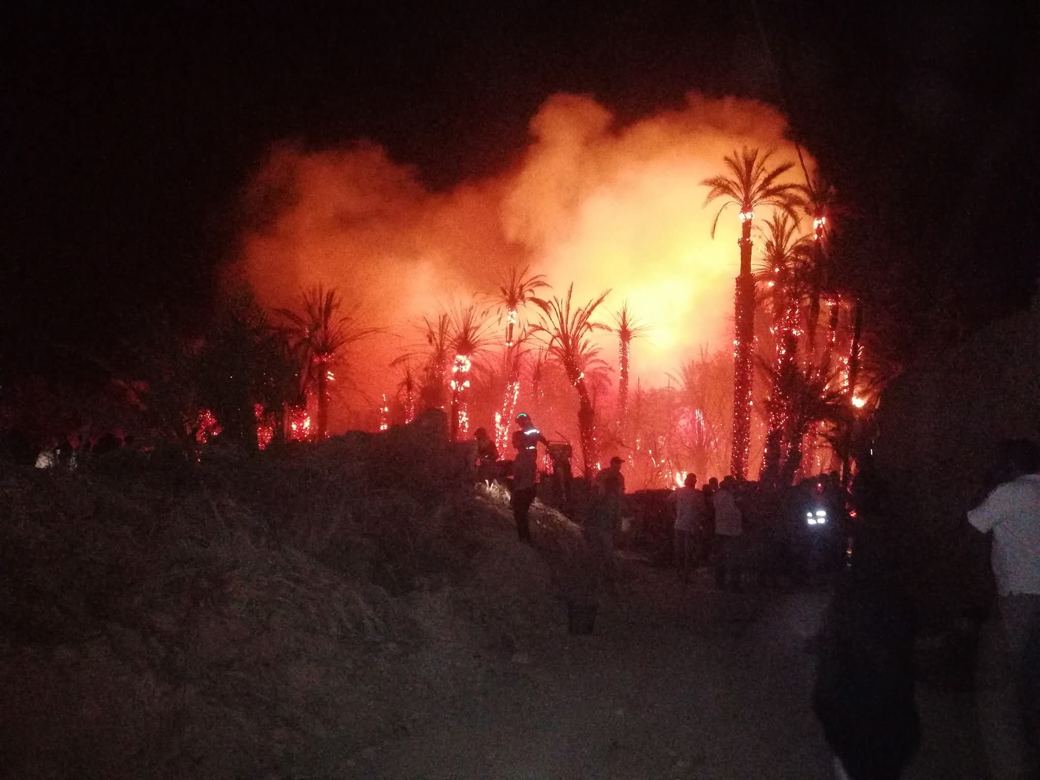 وكشفت مصادر الجريدة الإلكترونية “أكاديرإنو” ان النيران اشتعلت في المناطق الزراعية، حيث أسفرت هذه الحرائق على تدمير المئات من الأشجار المثمرة، خصوص أشجار النخيل والرمان والتي تعتبر مصدر رزق الساكنة المحلية، فيما أسباب الحريق لا زالت مجهولة.