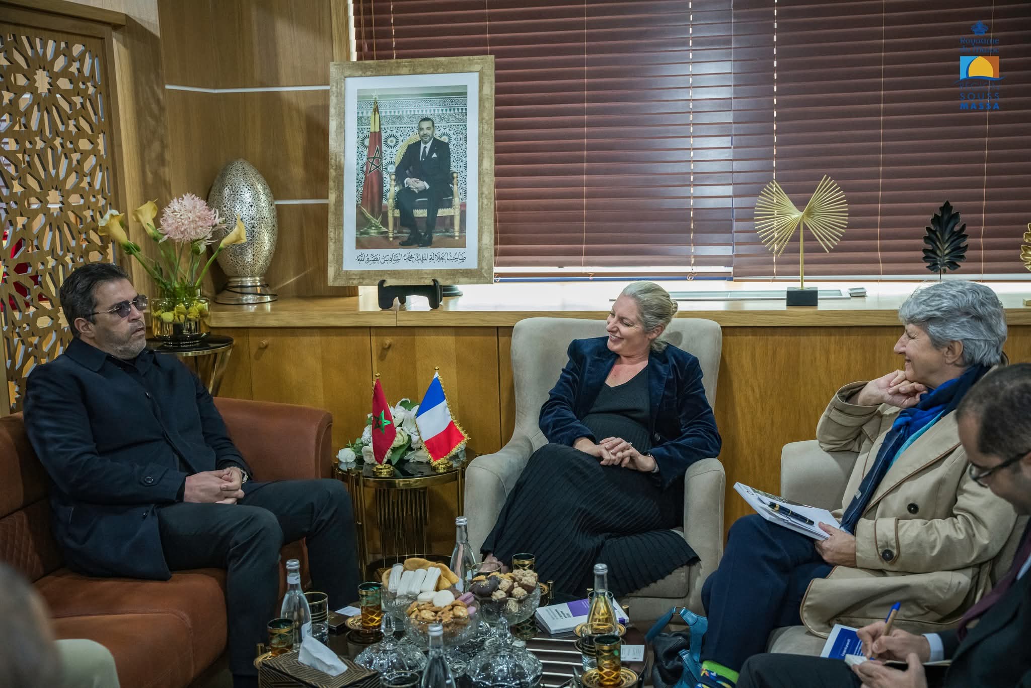 في إطار تعزيز التعاون الدولي اللامركزي وتجويد أداء المشاريع التنموية الكبرى، استقبل السيد كريم أشنكلي، رئيس مجلس جهة سوس ماسة، يومه الثلاثاء بمقر الجهة بأكادير، السيدة كاترين بونود، مديرة الوكالة الفرنسية للتنمية (AFD) بالمغرب، والتي كانت مرفوقة بالسيدة بياتريس ليدرلي، القنصلة العامة لفرنسا بأكادير.