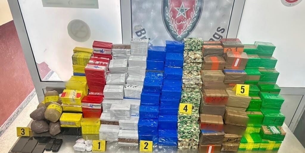 وقد مكنت عمليات التفتيش الدقيقة التي باشرتها العناصر الأمنية من ضبط شحنة هامة تتكون من 200 كيلوغرام من مخدر الشيرا و210 غرامات من مخدر الكوكايين، علاوة على 9 كيلوغرامات من مخدر “الكيف” ومبالغ مالية يرجح أنها من متحصلات هذا النشاط الإجرامي.