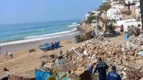 جرافات الهدم تدك البنايات العشوائية بشاطئ تغازوت شمال أكادير